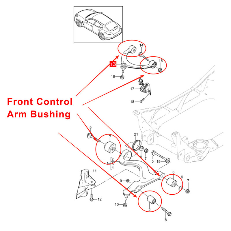 ແມ່ພິມຂອງ Porsche Panamera 2014-2016 Front Upper and Lower Control Arm Bushing Kit ແມ່ນຜະລິດຕາມ OEM